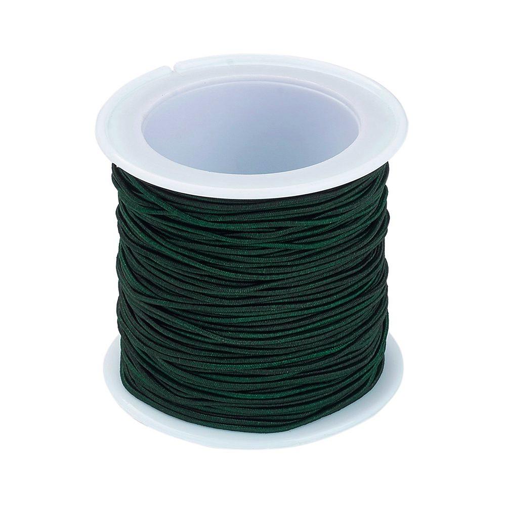 Качественная эластичная резинка в текстильной (синтетической) оплетке. Также называется шляпная резинка, шнур-резинка, эластичный шнур. Толщина около 1-1.3 мм. Цвет тёмно-зелёный, оттенок может отличаться от фотографии и в разных поставках. Шнур в намотке может состоять из нескольких кусков. Отлично подходит для создания браслетов, детских бус и резинок для волос. Цена за катушку, около 20 метров.