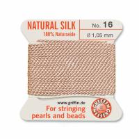 Очень толстая и прочная шелковая нить для низания бус. Изготовлена из высококачественного натурального 100% шелка, произведена немецкой компанией Griffin. К нити прикреплена стальная скрученная проволочка-иголка для нанизывания бусин. Идеально подходит для использования с жемчугом и натуральными камнями. Цвет бледный персиково-бежевый (light pink). Оттенок может отличаться от фотографии и в разных поставках. Толщина около 1,05 мм. Цена за моток 2 метра.