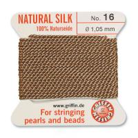 Очень толстая и прочная шелковая нить для сборки бус и браслетов. Изготовлена из высококачественного натурального 100% шелка, произведена немецкой компанией Griffin. К нити прикреплена стальная скрученная проволочка-иголка для нанизывания бусин. Идеально подходит для использования с жемчугом и натуральными камнями. Цвет бежево-коричневый (beige). Оттенок может отличаться от фотографии. Дизайн упаковки может отличаться от фотографии. Толщина около 1,05 мм (размер №16). Цена за моток 2 метра.