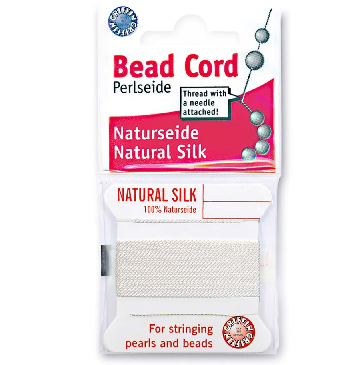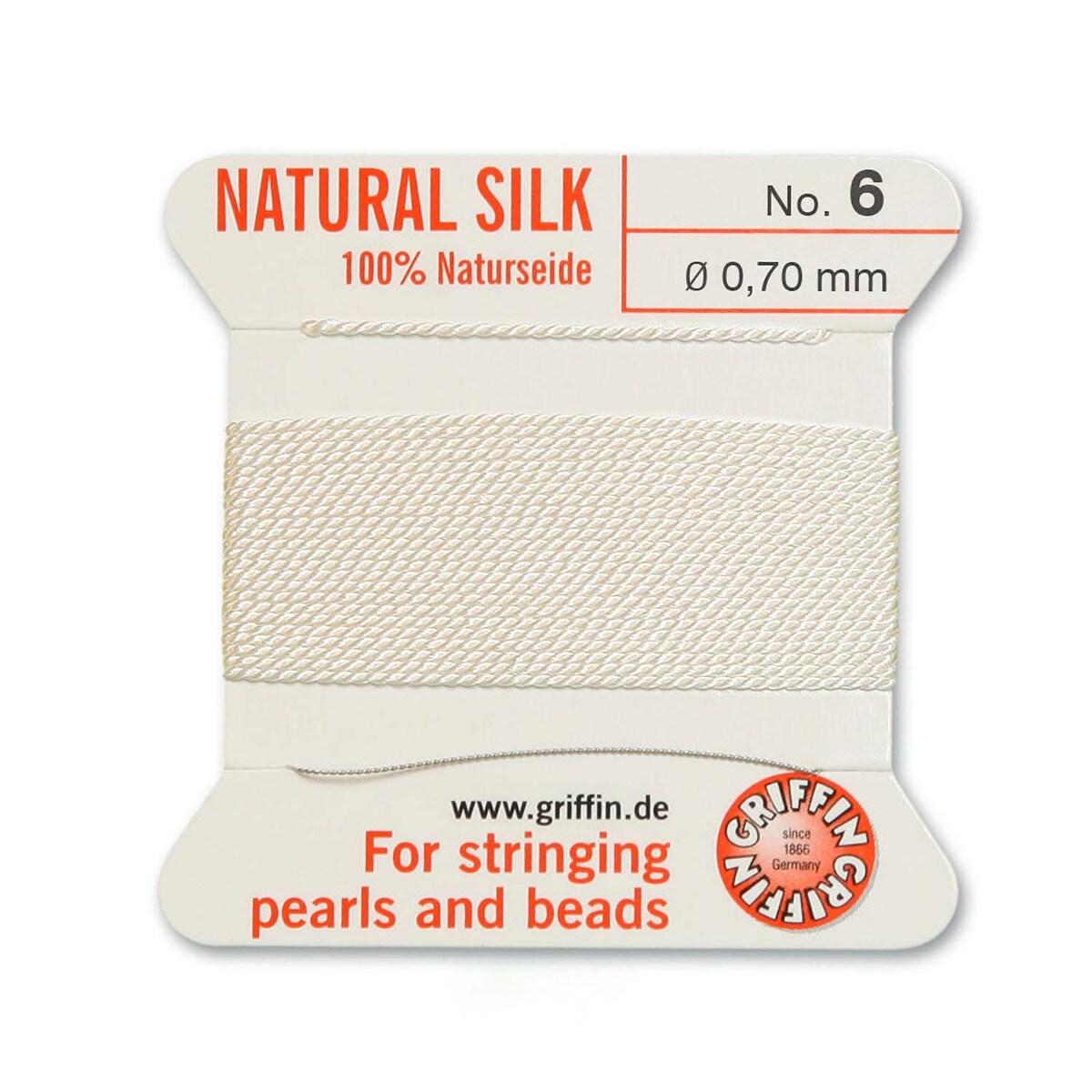 Толстая и прочная нить из высококачественного натурального 100% шелка, произведена компанией Griffin (Германия). К нити прикреплена проволочная иголочка. Идеально подходит для использования с жемчугом и натуральными камнями. Толщина около 0,7 мм. Цена за моток 2 метра.