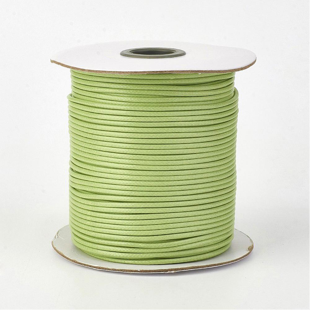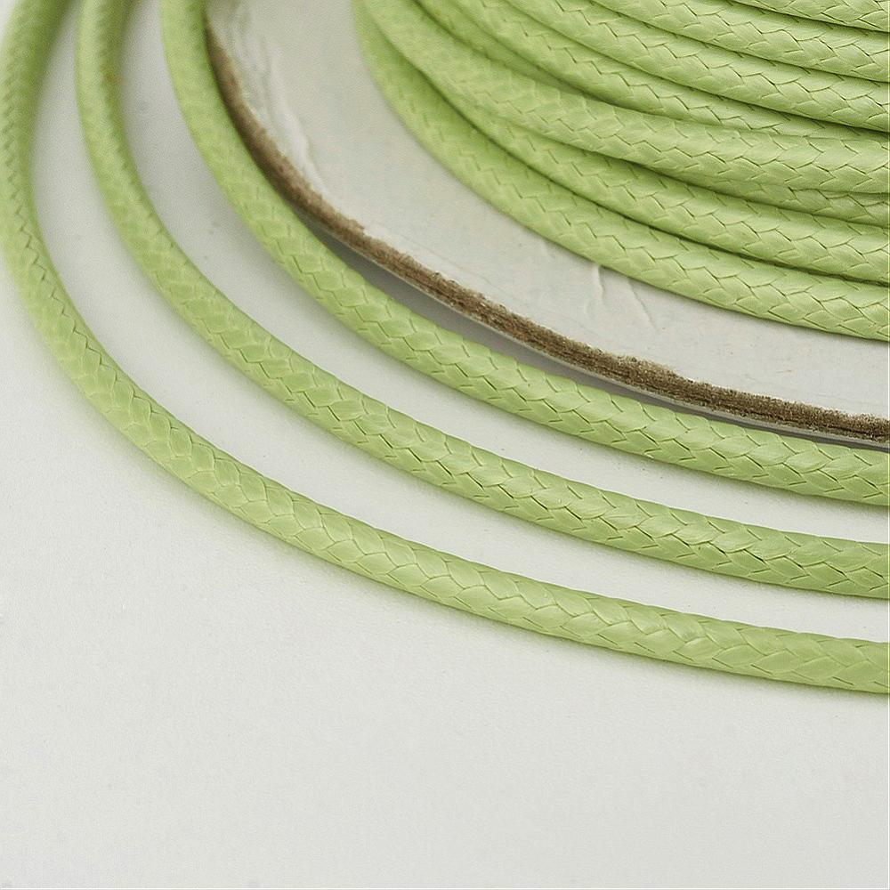 Плетеный синтетический шнур, цвет бледный жёлто-зелёный. В разных партиях оттенок может немного отличаться. Шнур сделан из полиэстеровых нитей, сверху покрыт воском. Хорошо подходит для браслетов красная нить. Толщина около 0.5-0.7 мм. По возможности, продается цельным куском, однако, может поставляться несколькими отрезами. Цена за 10 метров.