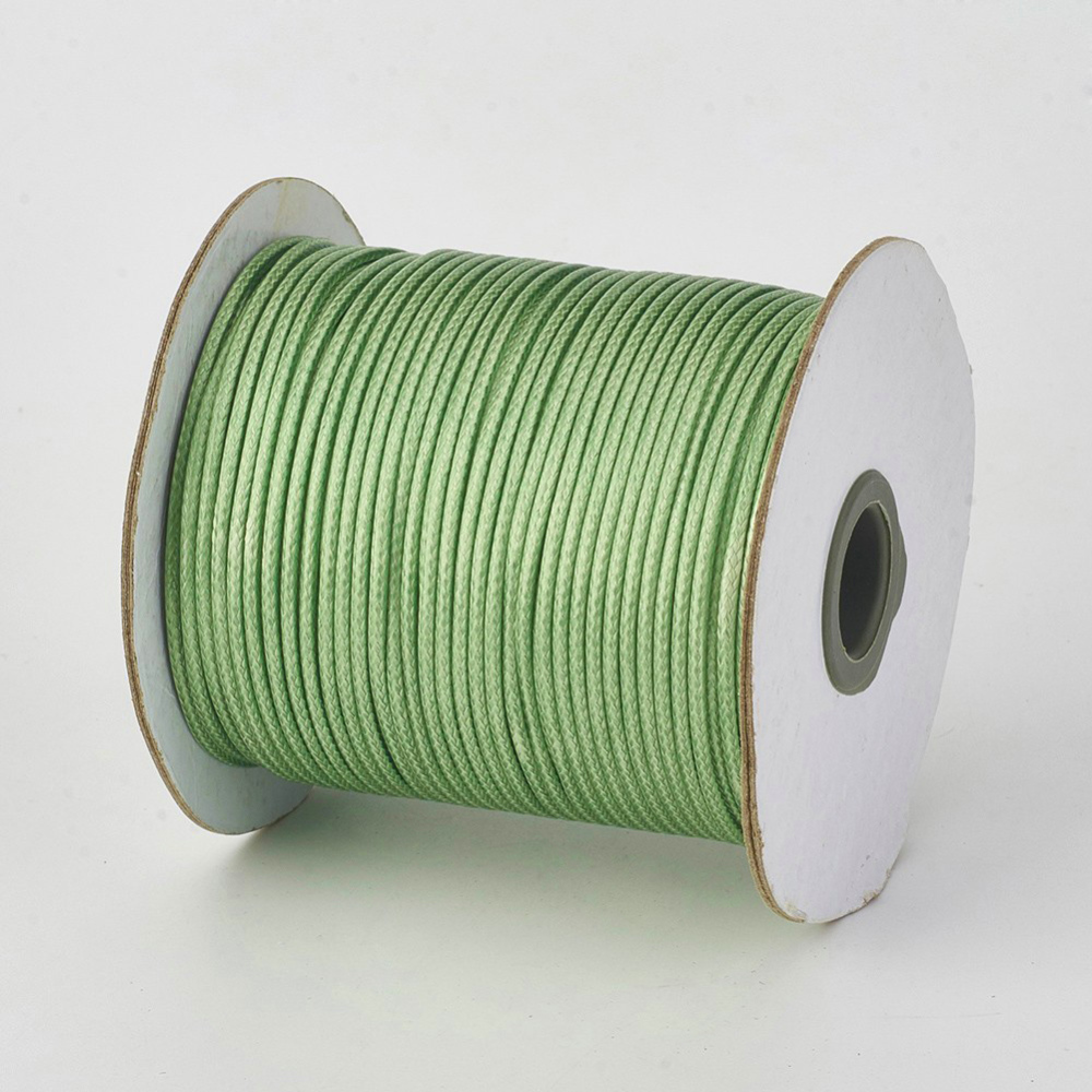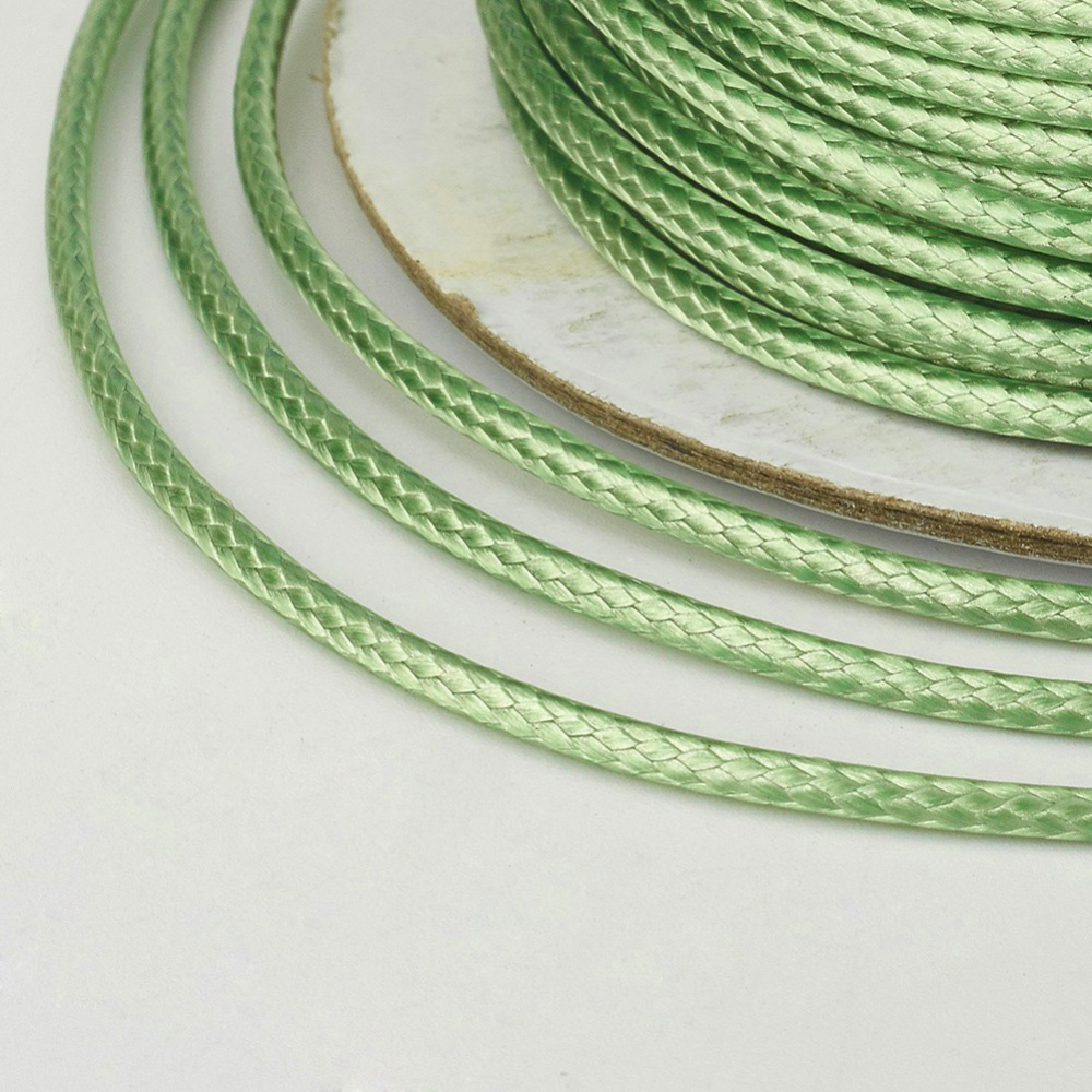 Плетеный синтетический шнур, цвет светло-зелёный. В разных партиях оттенок может немного отличаться. Шнур сделан из полиэстеровых нитей, сверху покрыт воском. Хорошо подходит для браслетов красная нить. Толщина около 0.5-0.7 мм. По возможности, продается цельным куском, однако, может поставляться несколькими отрезами. Цена за 10 метров.