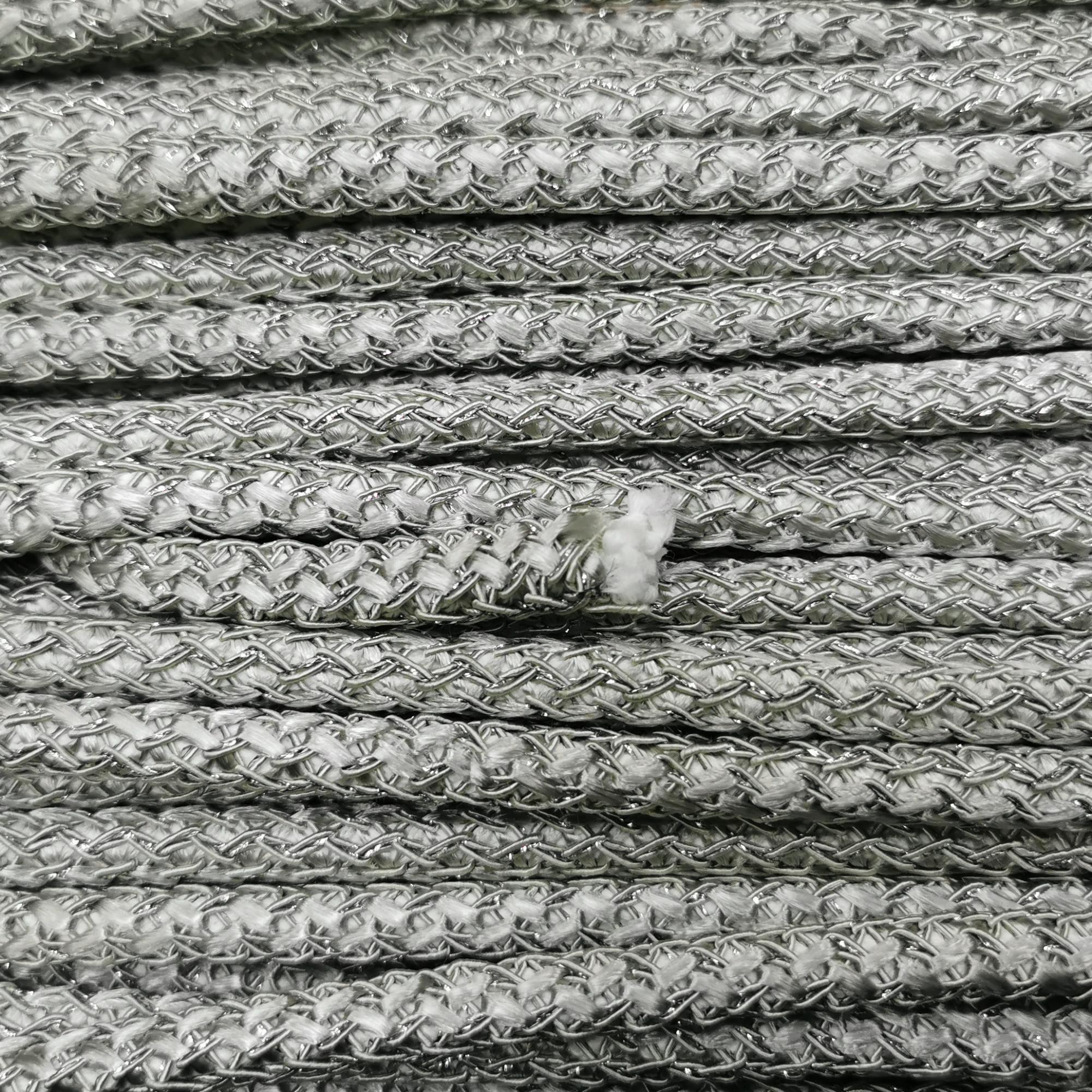 Толстый плетеный синтетический шнур-змейка с люрексом. Очень прочный, при этом довольно гибкий и мягкий, слегка тянется. Цвет серебристо-серый. Оттенок может отличаться от фотографии и в разных поставках. Плетение не очень плотное, сквозь нити может проглядывать сердечник, отличающийся по цвету. Толщина около 8 мм, может немного отличаться от заявленной. Можно использовать в качестве основы для создания колье или браслетов, он может послужить альтернативой бисерному жгуту. Произведен в Греции. Цена за отрезок длиной примерно 90 см. При покупке нескольких единиц, по возможности, отрезается цельным куском.