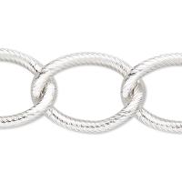 Эффектная, очень крупная, но лёгкая цепочка из алюминия. Оттенок может отличаться от фотографии. Цвет: серебристый, за счет узора звенья блестят больше, чем у обычных цепочек. Размер звена примерно 28х19 мм, такие крупные звенья можно использовать как отдельные декоративные элементы, например, для сережек. Толщина звена около 2.8 мм. Звенья разъемные. Цена за 1 метр.