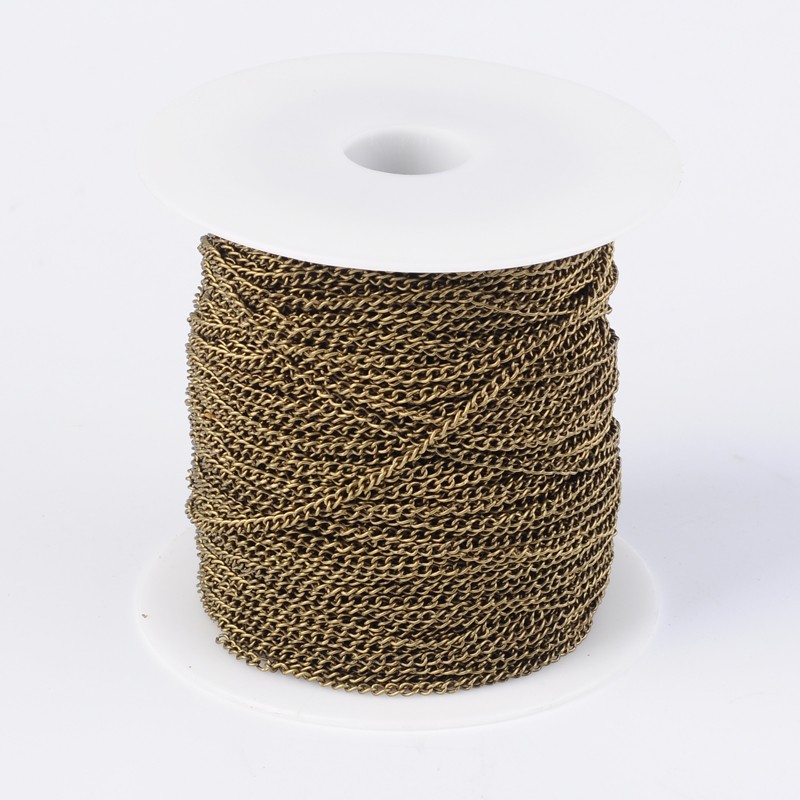 Цепочка цвета античной бронзы. Оттенок может отличаться от фотографии. Размер звена в разных поставках варьируется от 3*2 до 3.5*2.5мм. При заказе нескольких метров, по возможности, продается цельным куском. Цепочка не очень прочная, не подходит для тяжелых подвесок, лучше использовать в декоративных целях. Цена за 5 метров.