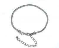 Цепочка-змейка темно-серебристого цвета, основа для браслета в стиле Пандора. Диаметр цепочки - 3 мм. Концевик с одной стороны скручивается, что позволяет легко менять бусины на браслете. Диаметр скручивающегося элемента - 6 мм. Длина браслета 20 см + удлиняющая цепочка 5-6 см. Удлинитель можно укоротить или убрать совсем. Цена за 1 цепочку.