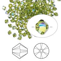Кристалл Swarovski, цвет болотно-зеленый (olivine AB) с радужным покрытием (Crystal Aurore Boreale), биконус (Xilion bicone (5328)). Цена за 10 шт.