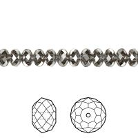 Бусина Swarovski, рондель (Briolette Bead (5040)). Размер 4*3 мм. Диаметр отверстия - около 0.5 мм. Цвет Серебряная ночь (Crystal Silver Night 001 SINI). Производство: Австрия. Цена за 1 шт.