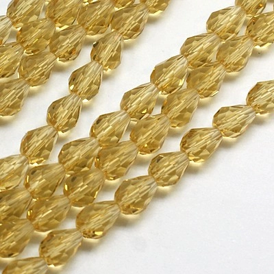 Стеклянная граненая бусина - капелька, размер 8*12 мм. Цвет тёмно-жёлтый, оттенок может отличаться от фотографии и в разных поставках. Низки формируются без проверки каждой бусины на дефекты. Цена за низку, около 55 бусин.