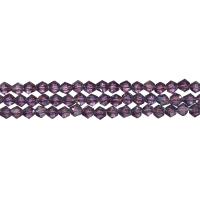 Бюджетные стеклянные граненые бусины - биконусы фиолетового цвета с покрытием AB. Бусины могут немного отличаться по форме и размеру. Оттенок может немного отличаться от фото. Цена за низку около 78 бусин.