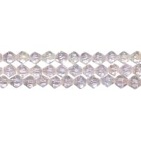 Бюджетные граненые бусины - биконусы из стекла, кристально-прозрачные, на низках могут быть бусины как с радужным покрытием (AB), так и с перламутровым. Бусины могут немного отличаться по форме и размеру. Оттенок может немного отличаться от фото. Цена за низку около 45-55 бусин в зависимости от размера.