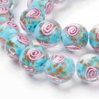 Бусина из стекла в технике lampwork ручной работы. Бусина голубого цвета со спиральным узором розового цвета и золотистыми блестками. Оттенок может отличаться от фотографии. Диаметр отверстий - около 1.2-1.6 мм. Бусины могут немного отличаться по форме и размеру. Цена за 2 шт.