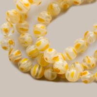 Низка стеклянных бусин ручной работы, выполненных в технике миллефиори. Прозрачные бусины с бело-желтыми цветочками. Цена за низку.