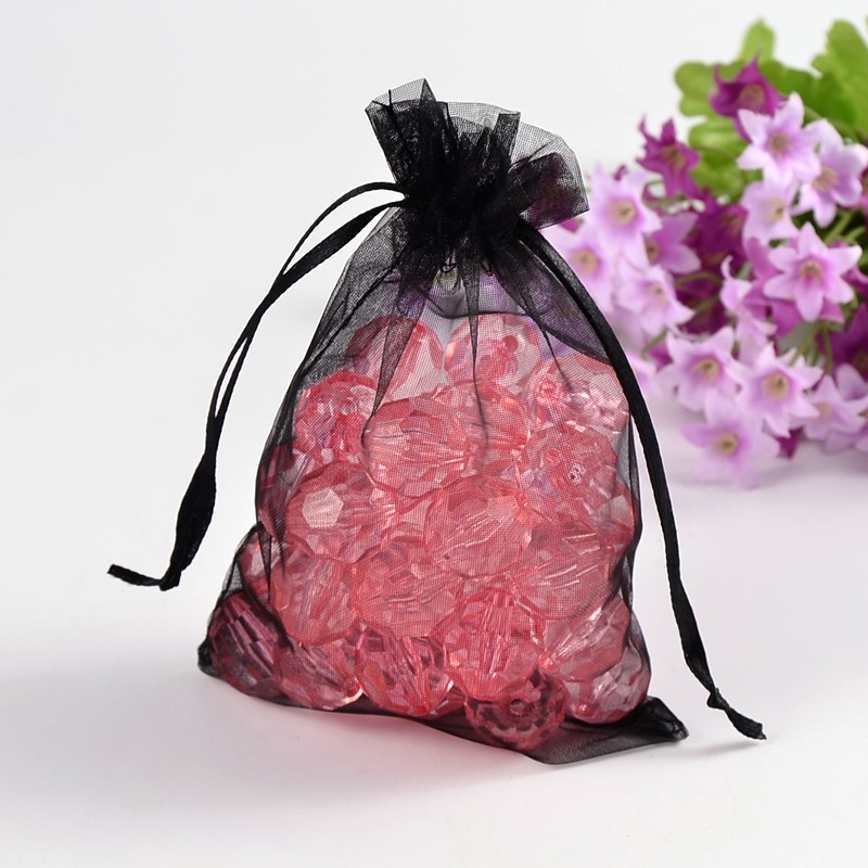 Подарочный мешочек из органзы черного цвета. В мешочек вставлена черная ленточка для завязывания. Оттенок может отличаться от фотографии. Мешочки могут немного отличаться по форме и размеру, быть слегка помятыми. Цена за 10 шт.