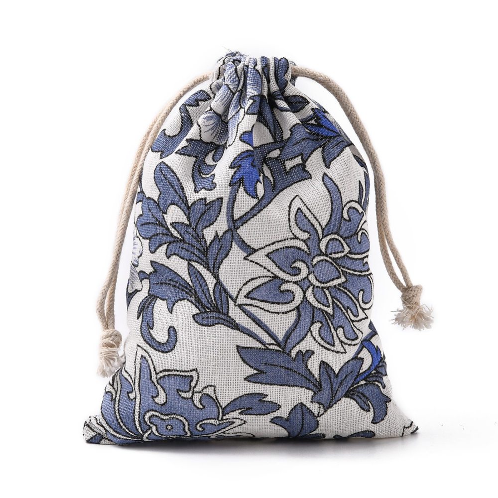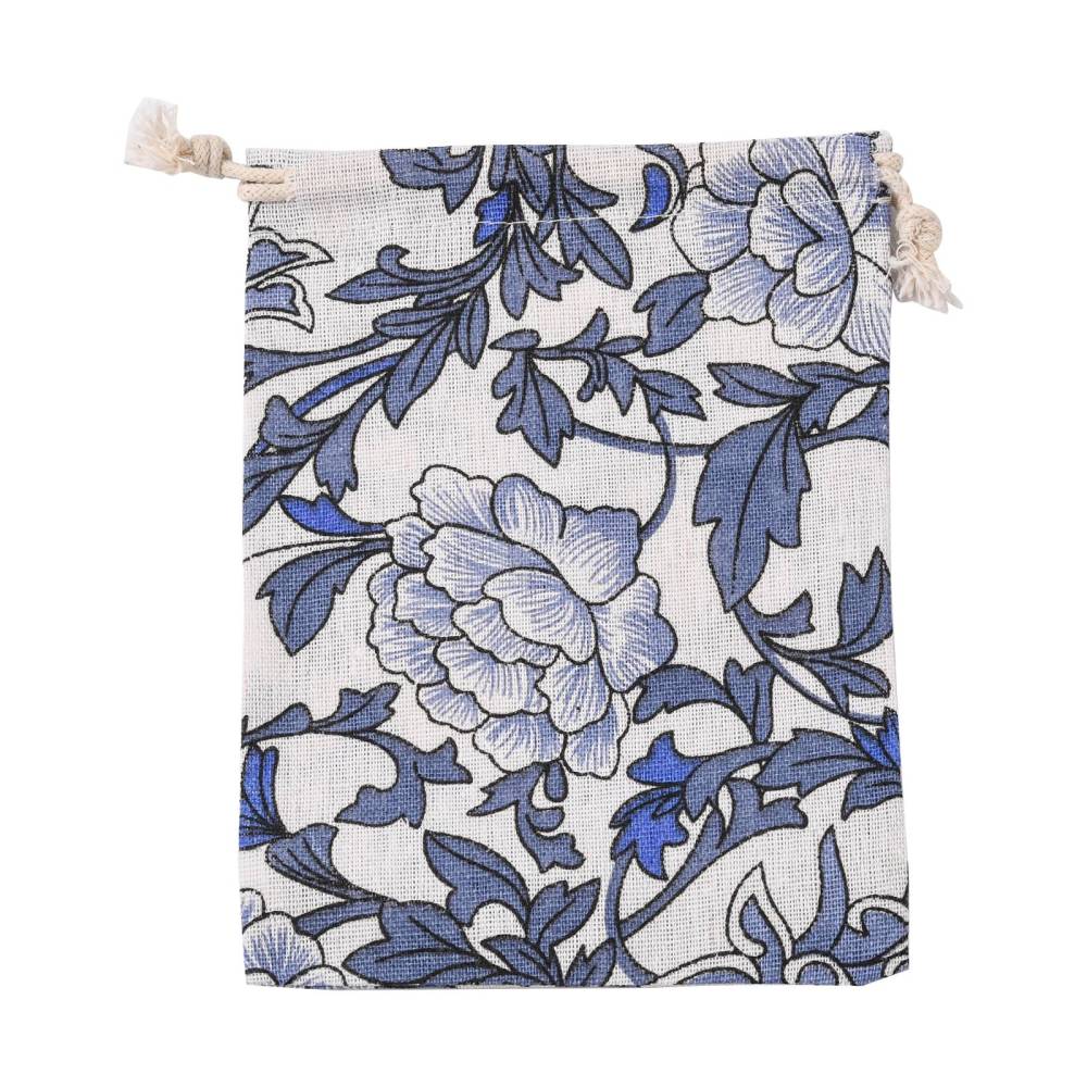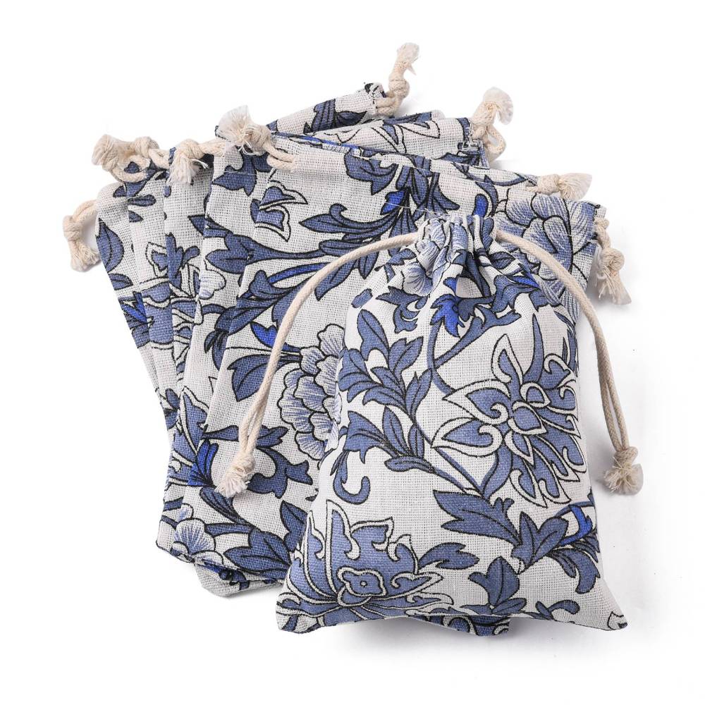 Текстильный подарочный мешочек в эко-стиле, натурального цвета с растительным орнаментом (на мешочке изображены цветы, веточки и листья в серо-голубых и синих тонах). Отлично подойдет для упаковки украшений в экостиле. В мешочек вставлена веревочка льняного цвета для завязывания. Мешочки могут быть немного мятыми и слегка отличаться по форме и размеру. Оттенок может отличаться от фотографии и в разных поставках. Цена за 5 шт.