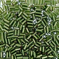 Японский бисер TOHO Bugle (стеклярус Тохо), размер 3мм (толщина 1.6мм). Прозрачный травянисто-зеленый с серебристой сердцевиной (Silver-Lined Olivine). Оттенок может отличаться от фотографии. Цена за 10 грамм. Среднее количество бисерин в 1 грамме стекляруса Toho 70-80 шт, может сильно варьироваться в зависимости от вида бисера.
