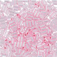 Японский бисер TOHO Bugle (стеклярус Тохо), размер 3мм (толщина 1.6мм). Прозрачный розовый с серебристой сердцевиной (Silver-Lined Pink). Оттенок может отличаться от фотографии. Цена за 10 грамм. Среднее количество бисерин в 1 грамме стекляруса Toho 70-80 шт, может сильно варьироваться в зависимости от вида бисера.