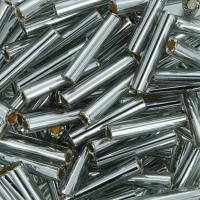 Японский бисер TOHO Bugle (стеклярус Тохо). Гладкие стеклянные трубочки длиной 9 мм и шириной около 1.8мм. Прозрачный серый бисер с серебристой сердцевиной (Silver-Lined Black Diamond). Оттенок может отличаться от фотографии. Цена за 10 грамм. Среднее количество бисерин в 1 грамме стекляруса Toho 22-24 шт, может сильно варьироваться в зависимости от вида бисера.
