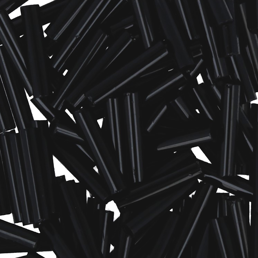 Японский бисер TOHO Bugle (стеклярус Тохо), размер 9мм (толщина около 1.8мм). Непрозрачный черный (Opaque Jet). Оттенок может отличаться от фотографии. Цена за 10 грамм. Среднее количество бисерин в 1 грамме стекляруса Toho 22-24 шт, может сильно варьироваться в зависимости от вида бисера.