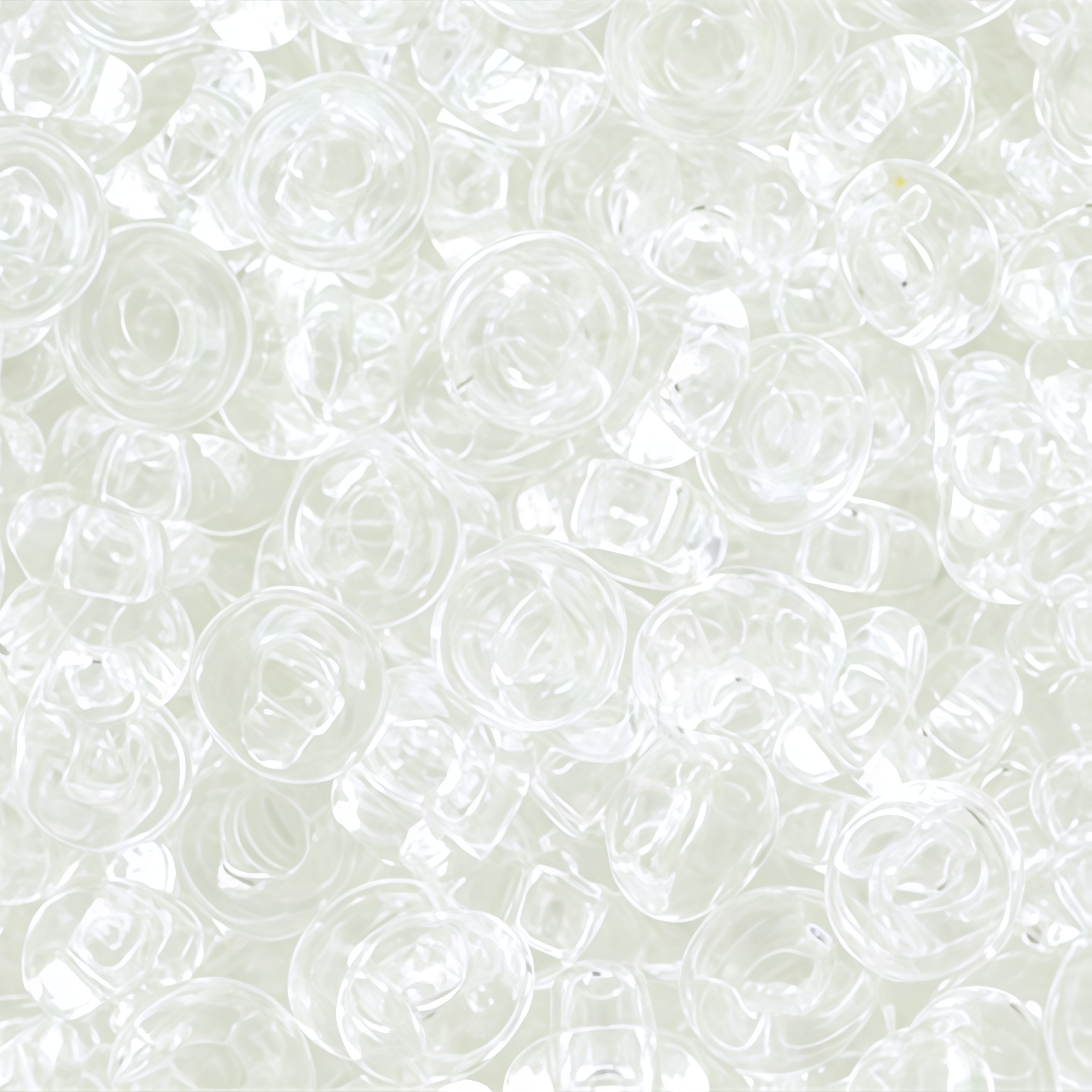Японский бисер TOHO Demi Round (Тохо Деми Раунд), размер 8/0 (примерно 3*1.2-1.4 мм). Необычная форма бублик (кольцо, рондель). Кристально-прозрачный (Transparent Crystal). Цена за 10 грамм. Среднее количество бисерин в 1 грамме Toho Demi Round около 50-75 штук, может сильно варьироваться в зависимости от вида бисера.