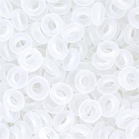 Японский бисер TOHO Demi Round (Тохо Деми Раунд), размер 8/0 (примерно 3*1.2-1.4 мм). Необычная форма бублик (кольцо, рондель). Кристально-прозрачный матовый (Transparent-Frosted Crystal). Цена за 10 грамм. Среднее количество бисерин в 1 грамме Toho Demi Round около 50-75 штук, может сильно варьироваться в зависимости от вида бисера.