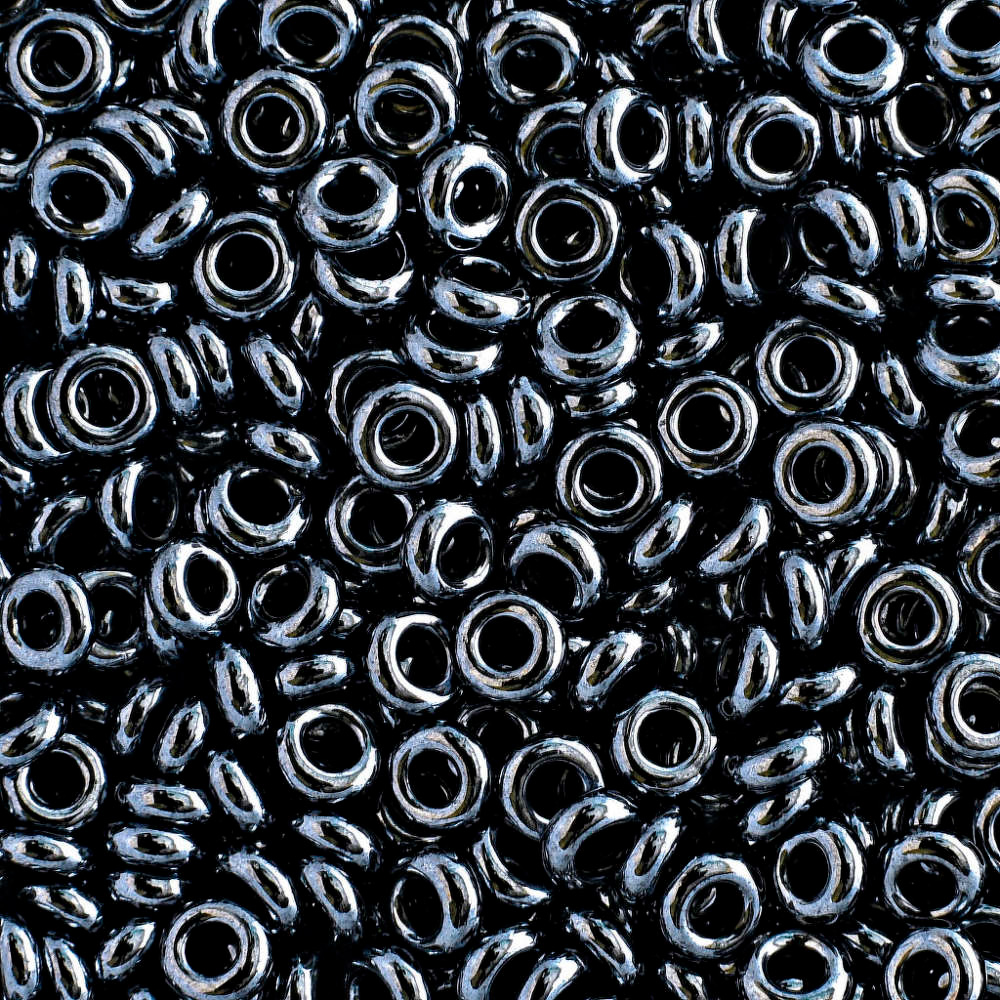 Японский бисер TOHO Demi Round (Тохо Деми Раунд), размер 8/0 (примерно 3*1.2-1.4 мм). Необычная форма бублик (кольцо, рондель). Жемчужный черного цвета (Metallic Hematite). Цена за 10 грамм. Среднее количество бисерин в 1 грамме Toho Demi Round около 50-75 штук, может сильно варьироваться в зависимости от вида бисера.