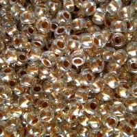 Японский бисер TOHO Round (круглый Тохо), размер 11/0 (2.2 мм). Кристально-прозрачный с золотистой сердцевиной (Gold-Lined Crystal). Оттенок может отличаться от фотографии. Цена за 10 грамм. Среднее количество бисерин в 1 грамме Toho 11/0 от 70 до 120 штук, может сильно варьироваться в зависимости от вида бисера.