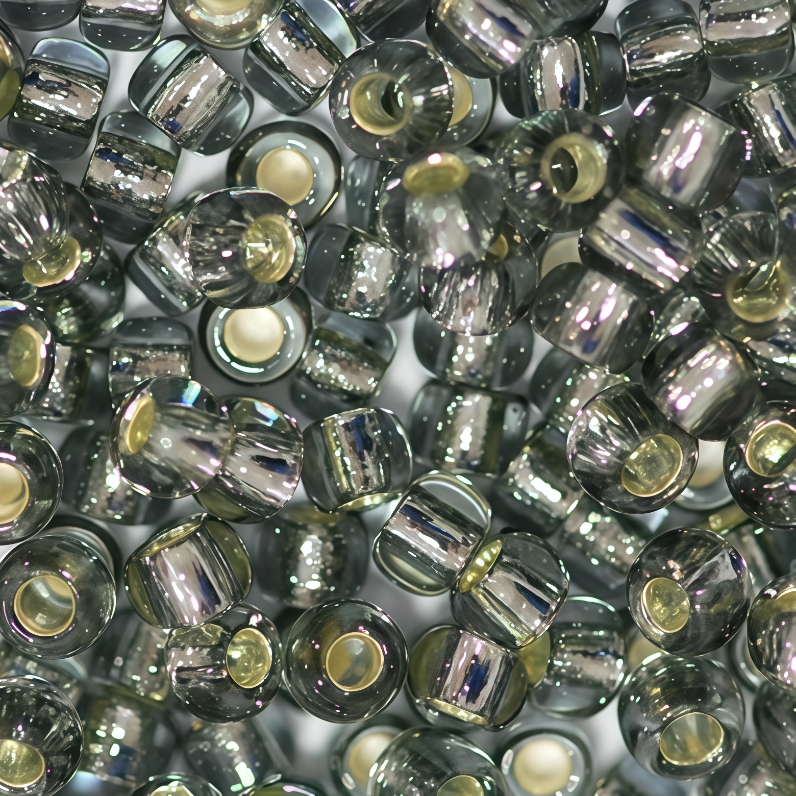 Японский бисер TOHO Round (круглый Тохо), размер 8/0 (3 мм). Прозрачный серый бисер с серебристой сердцевиной (Silver-Lined Black Diamond). Цена за 10 грамм (около 430 бисеринок).