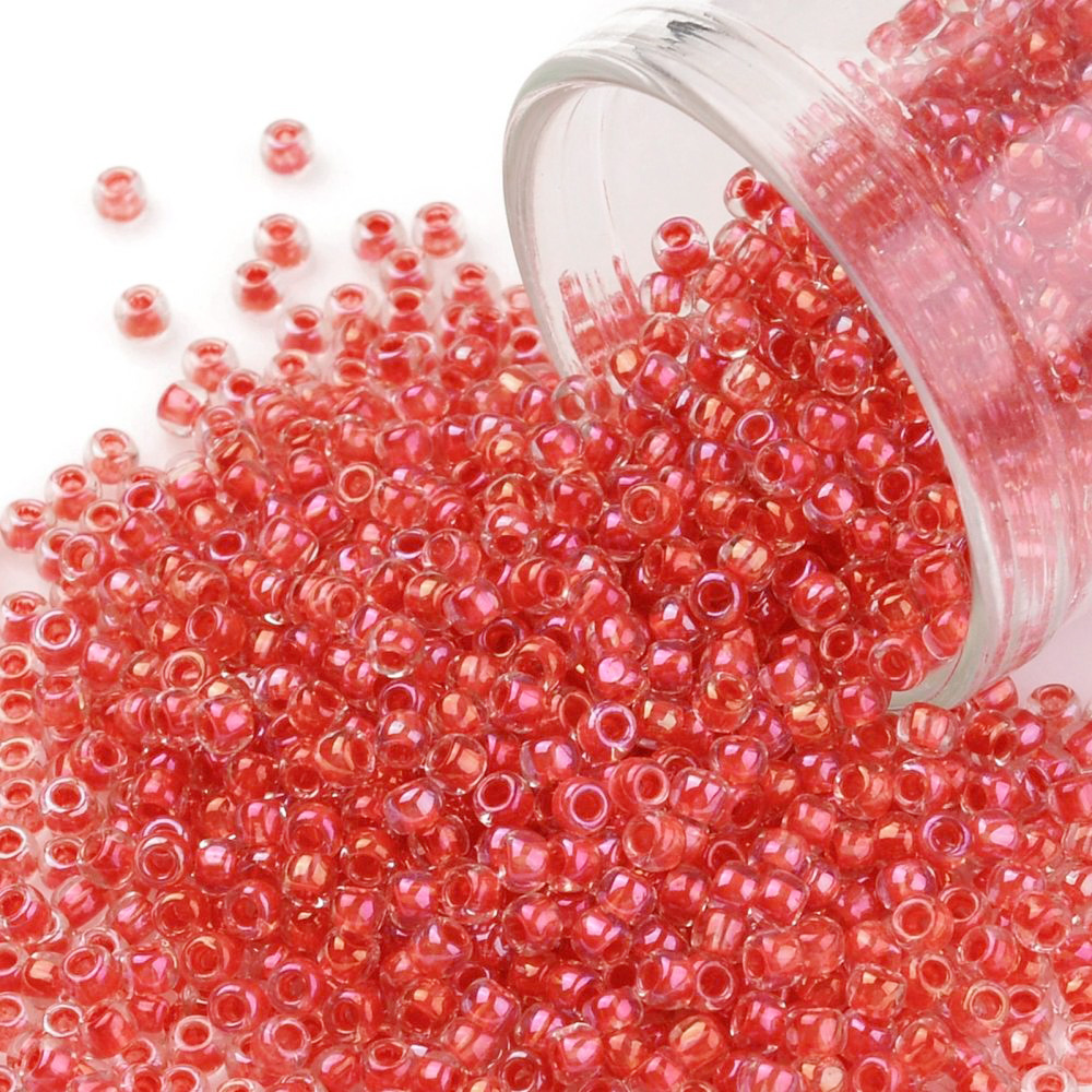 Японский бисер TOHO Round (круглый Тохо), размер 11/0 (2.2 мм). Кристально-прозрачный глянцевый бисер, окрашенный изнутри в коралловый цвет (Inside Color Luster Crystal/Coral Lined). Оттенок может отличаться от фотографии. Цена за 10 грамм. Среднее количество бисерин в 1 грамме Toho 11/0 от 70 до 120 штук, может сильно варьироваться в зависимости от вида бисера.