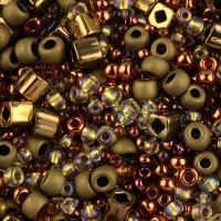 Японский бисер TOHO Mix - микс бисера и стекляруса разных форм, цветов и размеров. Цвет бронзово-золотистый (Ocha - Bronze). Оттенок и состав набора может отличаться от фотографии. Цена за 10 грамм.