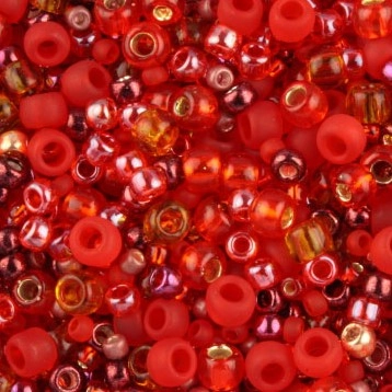Японский бисер TOHO Mix - ассорти бисера и стекляруса разных форм, оттенков и размеров в одной цветовой гамме. Цвет алый (Momiji - Red). Оттенок и состав набора может отличаться от фотографии. Миксы бисера - отличный вариант для сборки украшений и вышивки. Цена за 10 грамм.